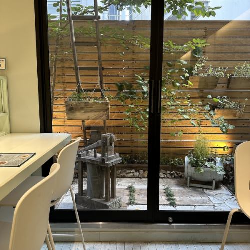 小さな庭園が望める2階席