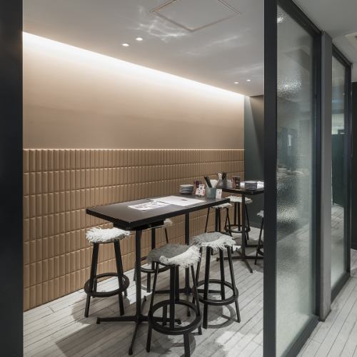 半透明のガラスで仕切られ4名卓が2つの半個室です。空間すべてを利用すると最大12名様までOK